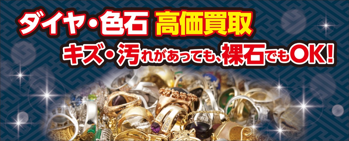 さらにダイヤモンドをはじめ、エメラルドやサファイヤ、ルビーなど色石も買い取り強化中。「日付やイニシャル入りでも、キズや汚れ・くすみがあっても、指輪から外れた裸石でもOK」という。店長は「両親からもらったり遺品整理で出てきた宝石で『立て爪で使わない』『デザインが古くて』とお困りの方は、ぜひお持ちください」と呼びかける。