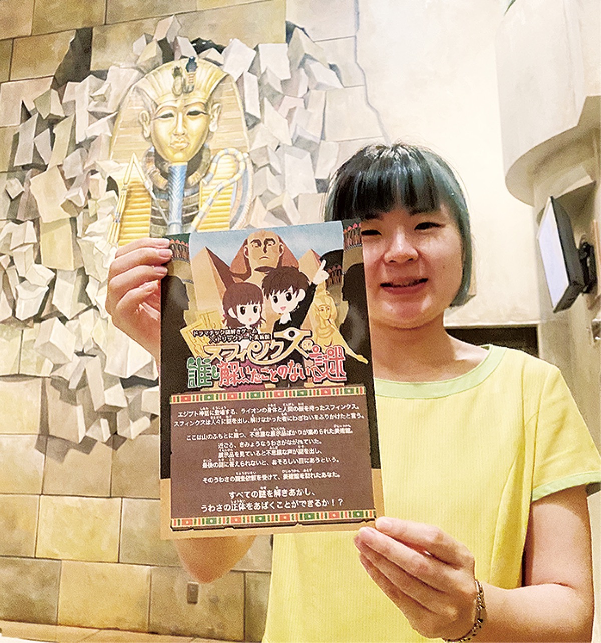 今回の謎解きゲームは、謎解き制作団体「よだかのレコード」((株)stamps/東京都新宿区)制作によるもの。エジプト神話に登場するスフィンクスが出す謎を解くため、同館の展示作品を見ながら6つの謎を解き、金庫を開ける4桁の数字を導き出すというストーリーだ。