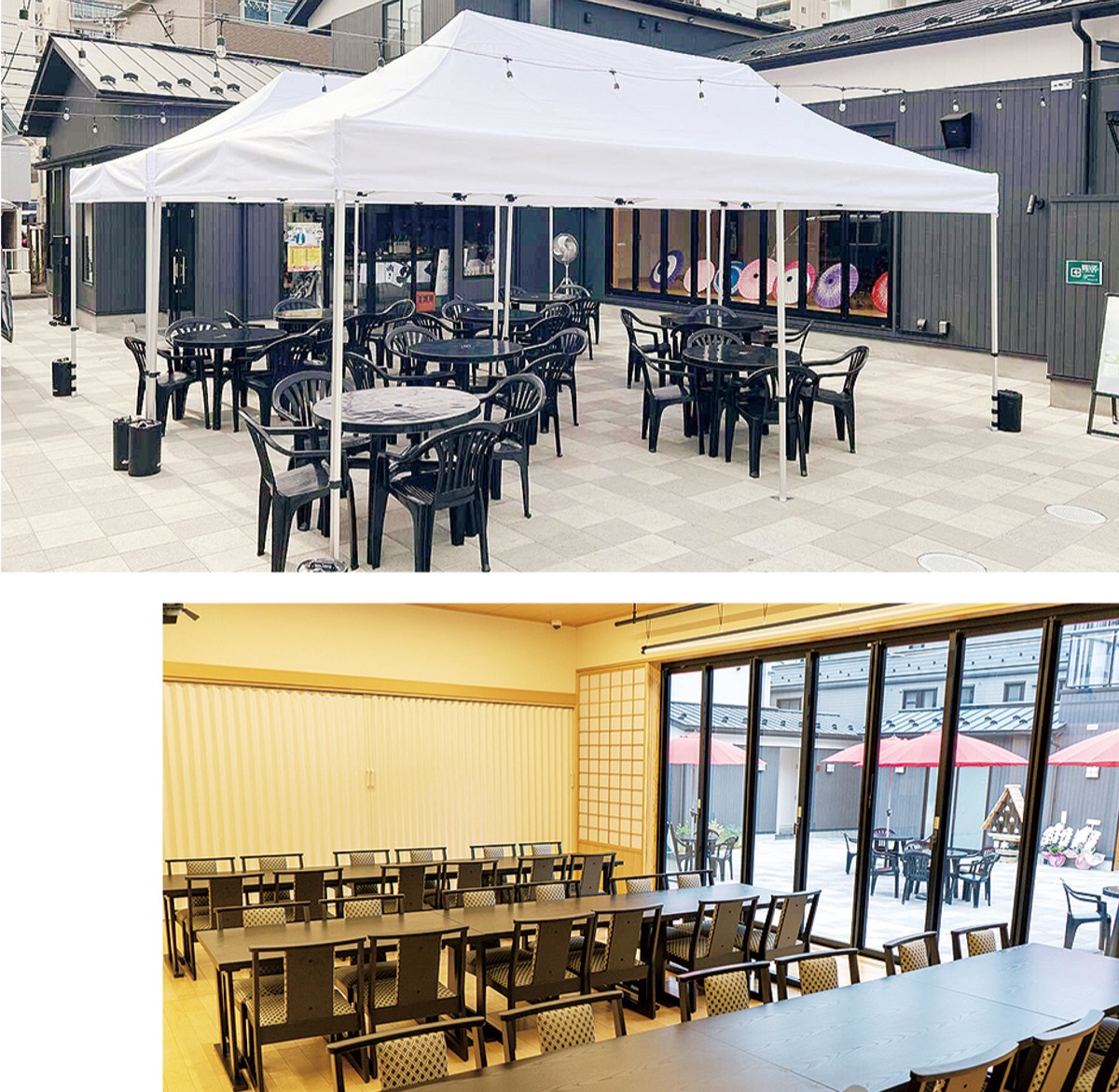 伝統文化の継承やにぎわい創出の新拠点として昨年開業し、中町の黒塀エリアで「大人の寄り道」と称される桑都テラス。演芸場と楽屋、店舗があり、観光スポットとしても人気の同施設で、7月20日からビアガーデンが催されている。期間は9月30日(土)まで。
