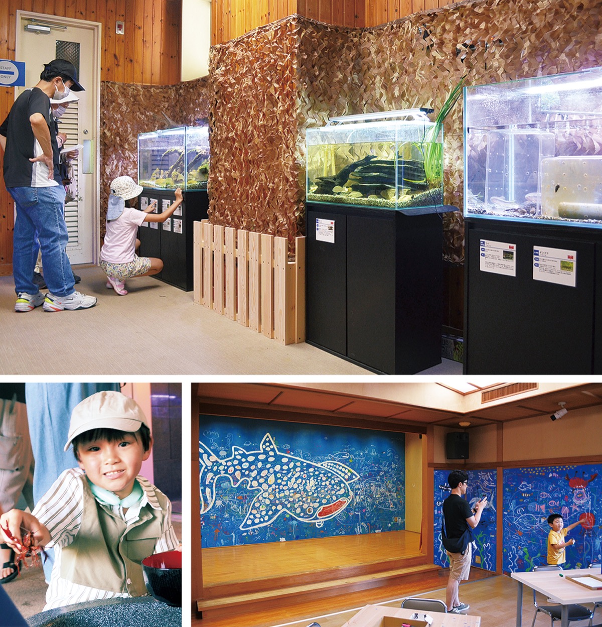 オープニングイベントは「遊んで学べるミニ水族館」と題し、川や海の生き物に触れるタッチプールやザリガニ釣りのほか、絵本やおもちゃ遊び、エコせっけんづくりなども行われた。夏休み中ということもあり、初日から親子や子どもたちが殺到。展示されている本物の魚やカメなどを興味津々に眺めて、「意外と楽しめた」「本当に無料でいいの?」などと感想を漏らしていた。日野市から小学1年の子どもを連れて訪れた母親は「色々な体験をさせてあげたいと思っていたので、良い機会になりました」と、ザリガニ釣りに夢中になっている息子を優しく見守っていた。