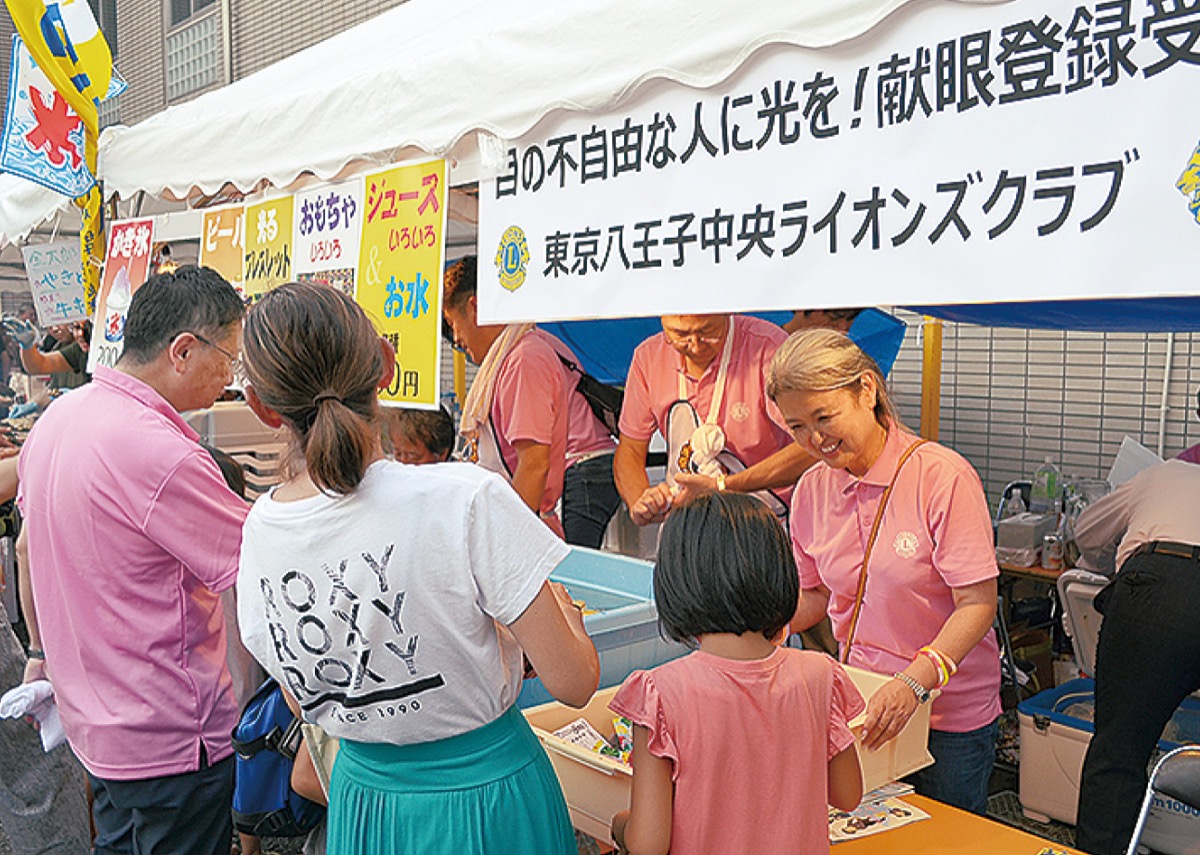 祭りでは和太鼓や創作ダンス、チアリーディングなども披露され、飲食物などを扱う模擬店も出店。奉仕団体の東京八王子中央ライオンズクラブも4年ぶりにブース出店し、死亡時に目の不自由な人に角膜を提供する「献眼登録」(アイバンク)への協力を呼びかけた。同クラブの中原信之会長は「一人でも多くの人に登録してもらいたい。会員の交流と、クラブについて知ってもらう機会にもなっている」と活動の意義を語った。