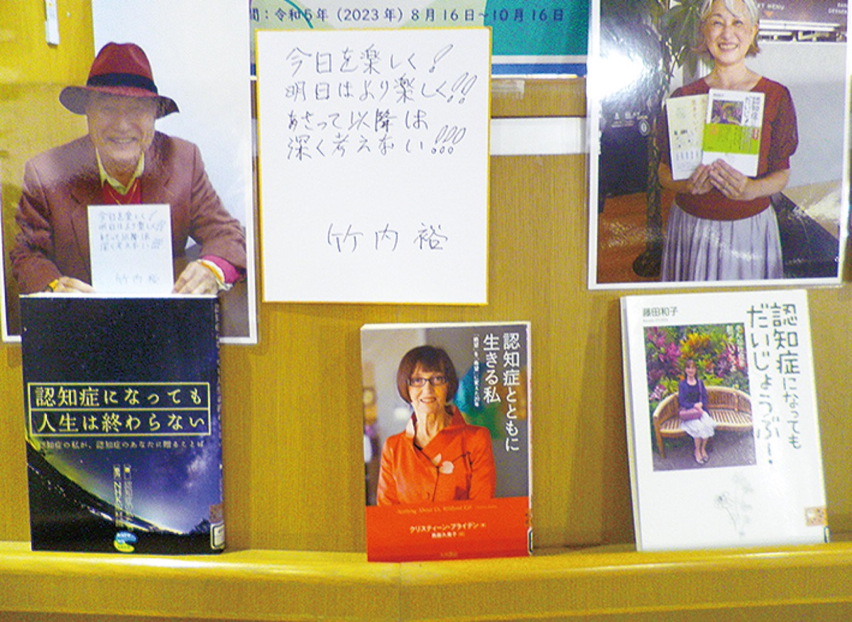テーマは「笑顔いいまち八王子 認知症になっても安心して暮らせるまちめざして」「家族みんなでフレイル予防」。著者直筆の色紙や、活動を行う本人からのメッセージを展示。市や関連機関が発行している認知症に関する冊子などの配布コーナーもある。