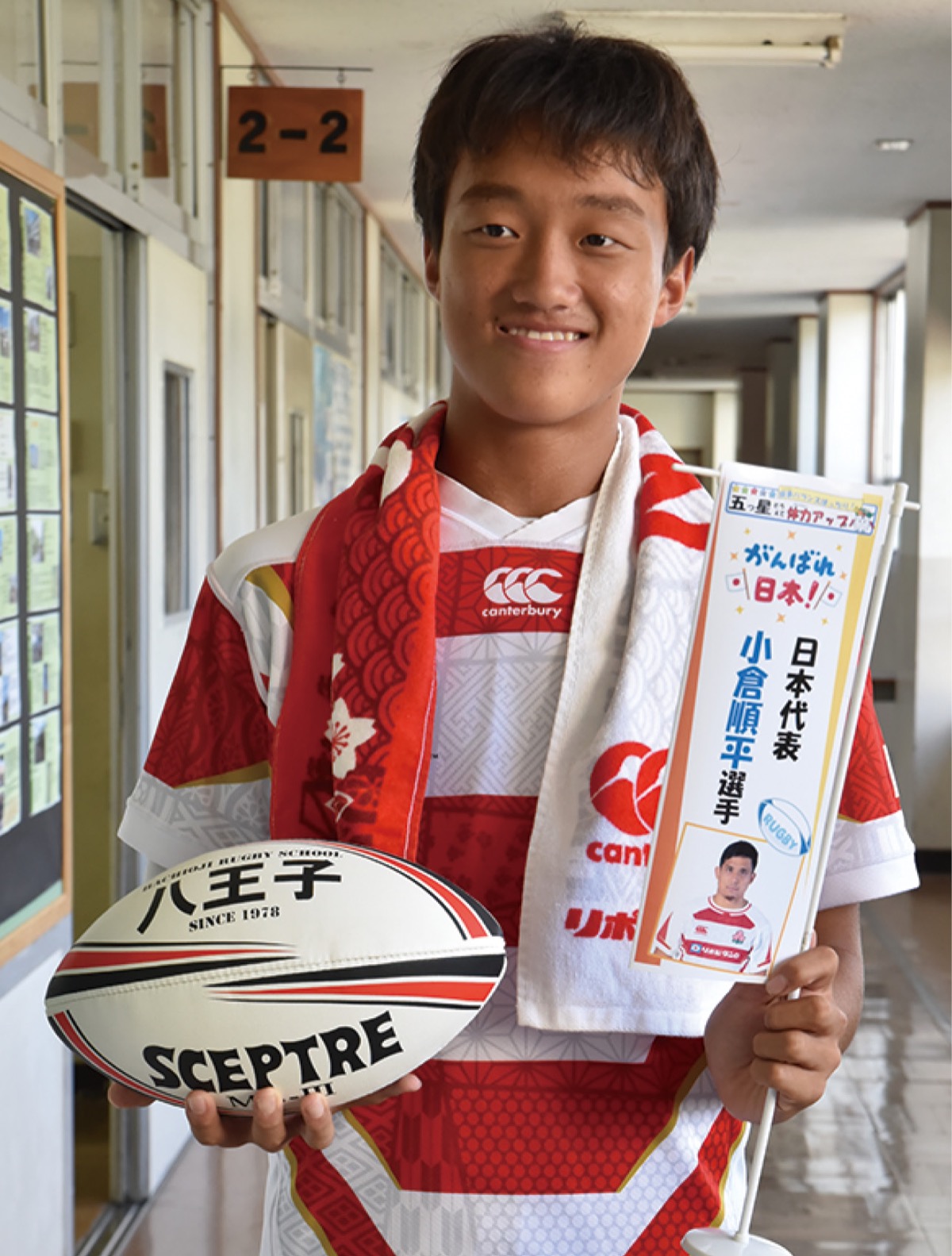 ラグビーワールドカップ(W杯)フランス大会に出場する日本代表を応援しよう--。9月8日開幕のW杯に合わせ、八王子市は市立小中学校と義務教育学校107校で、体力向上を掲げた献立の給食を提供。代表メンバーで八王子市館町出身の小倉順平選手(31)からは児童、生徒へメッセージが寄せられた。