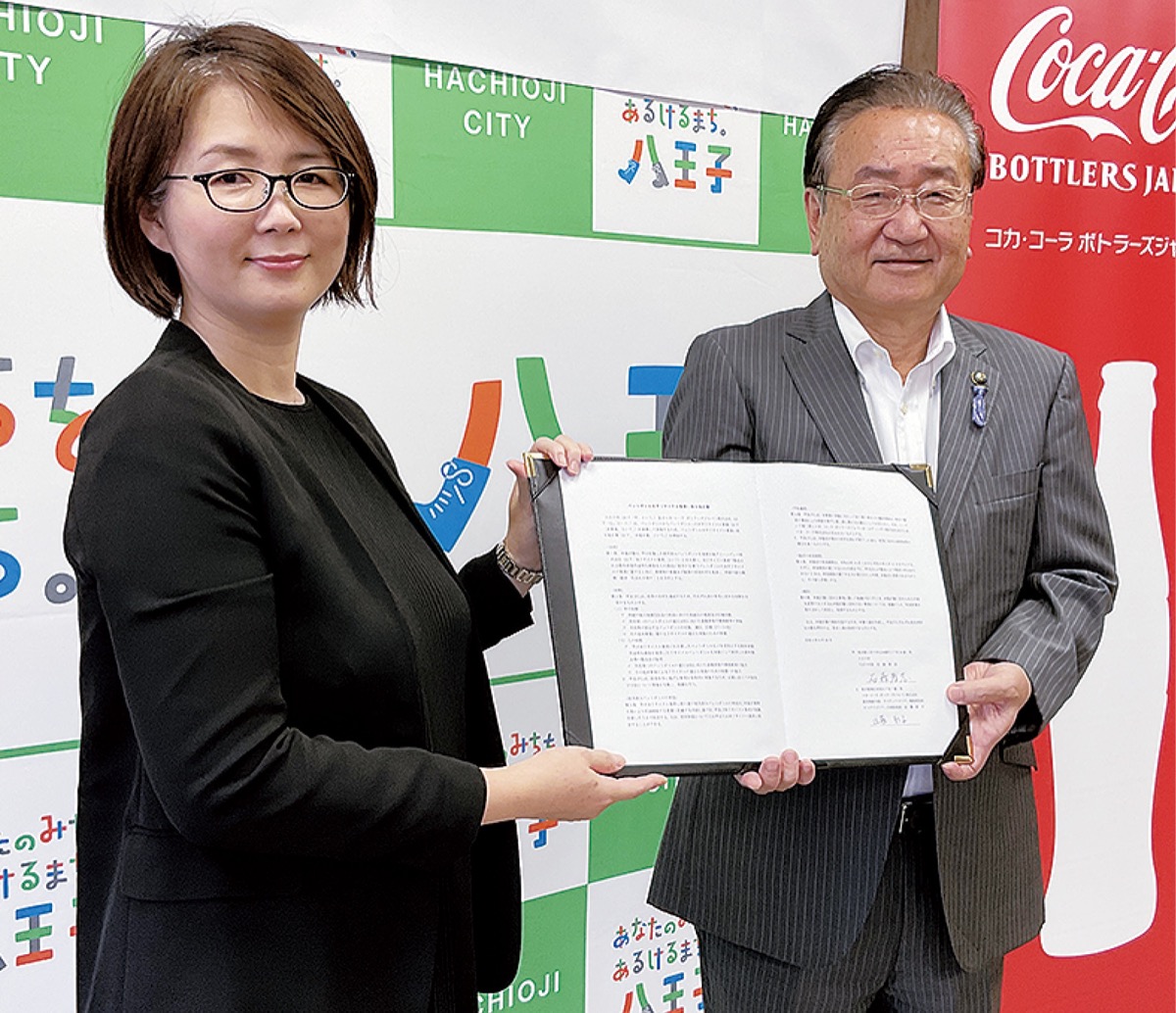 2050年の二酸化炭素排出実質ゼロを目指す「ゼロカーボンシティ宣言」を表明している八王子市は9月29日、家庭から回収した使用済みペットボトルを新たなペットボトルとして再生する「水平リサイクル(ボトルtoボトル)」事業でコカ・コーラボトラーズジャパン(株)(本社=港区)と協定を締結した。