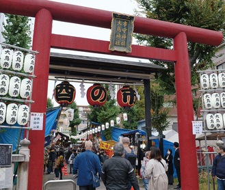 江戸時代から伝わる大鳥祭。境内に「福をとりこむ」とされる縁起物の「熊手」などを売る露店が立ち並び、神社に古い熊手を納めて新しい熊手を求める人が列をなした。また神社周辺には、たこ焼きなどの露店が多数出店し、にぎわいをみせていた。