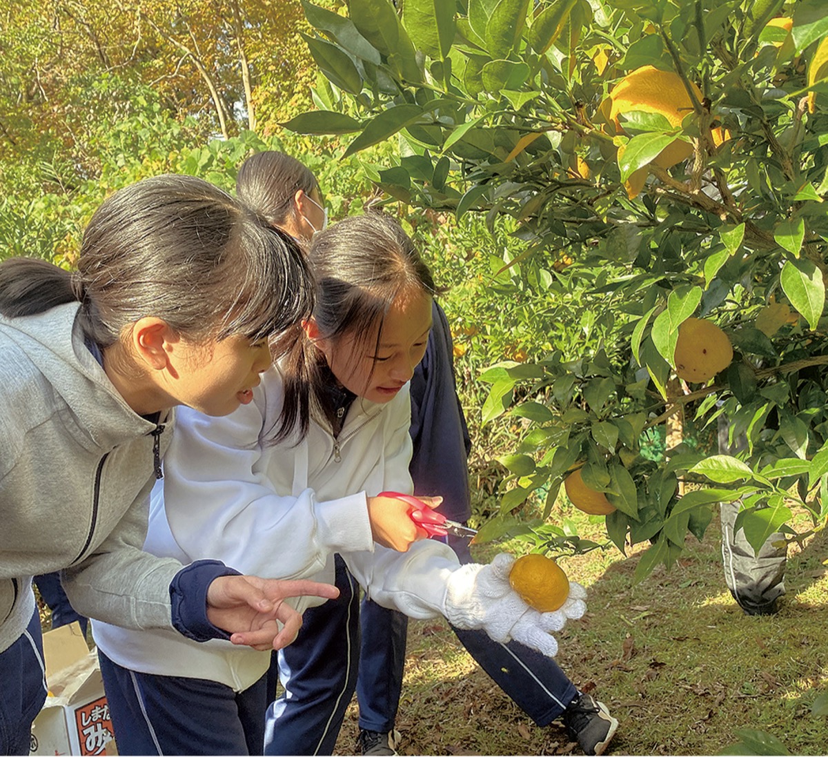 この取り組みは今回が初実施。宮ノ下町会(馬場俊男会長)や力石町会(中村光夫会長)で農作物への獣害被害があることや、恩方中の敷地内に猿が出没することなどを受け、町会、学校、市獣害対策課などがタッグを組んだ。上恩方町で個人の事情により出荷予定のないゆずの木約40本に対し、学校側は獣害対策や地域理解、地域貢献の一環として収穫作業に参加。収獲したゆずは市が買い取り、学校給食課が冬至の日に合わせたゆずメニューを市内の全公立小中学校に振る舞う予定。
