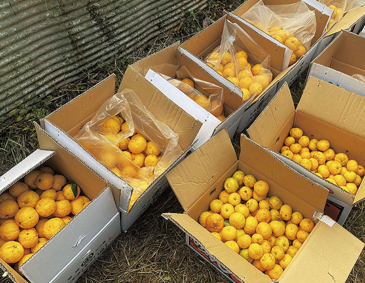 上恩方町にある恩方中学校(植田恭正校長)の生徒らが11月17日、猿などによる獣害対策のため近隣農園で出荷予定のないゆずを収穫した。収獲した約120キログラムのゆずは、市内全公立小中学校で12月22日の冬至前後に給食として提供される予定だ。