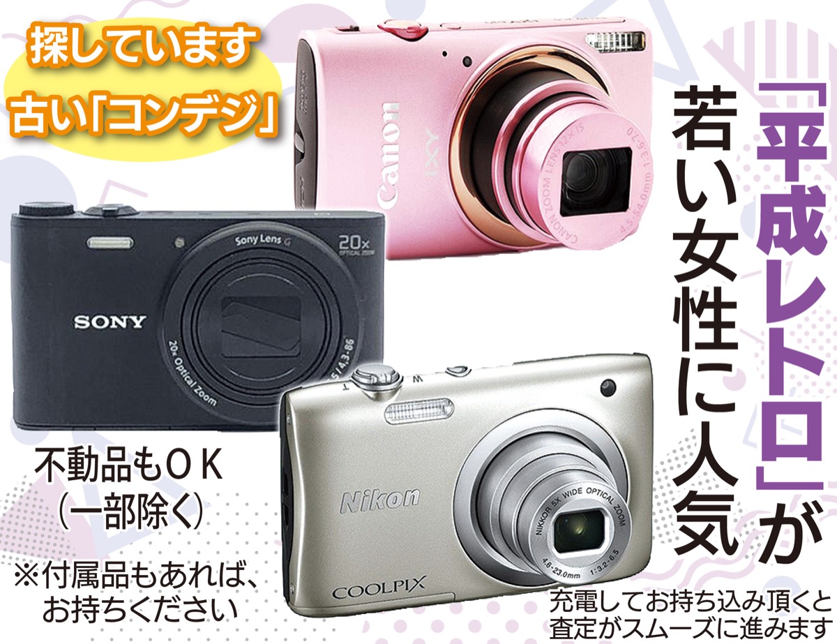 八王子駅北口徒歩5分のキングラム八王子店では、そんなコンデジの買取を強化中。しまったままの古いカメラが現金に変わる、またとないチャンスをお見逃しなく。