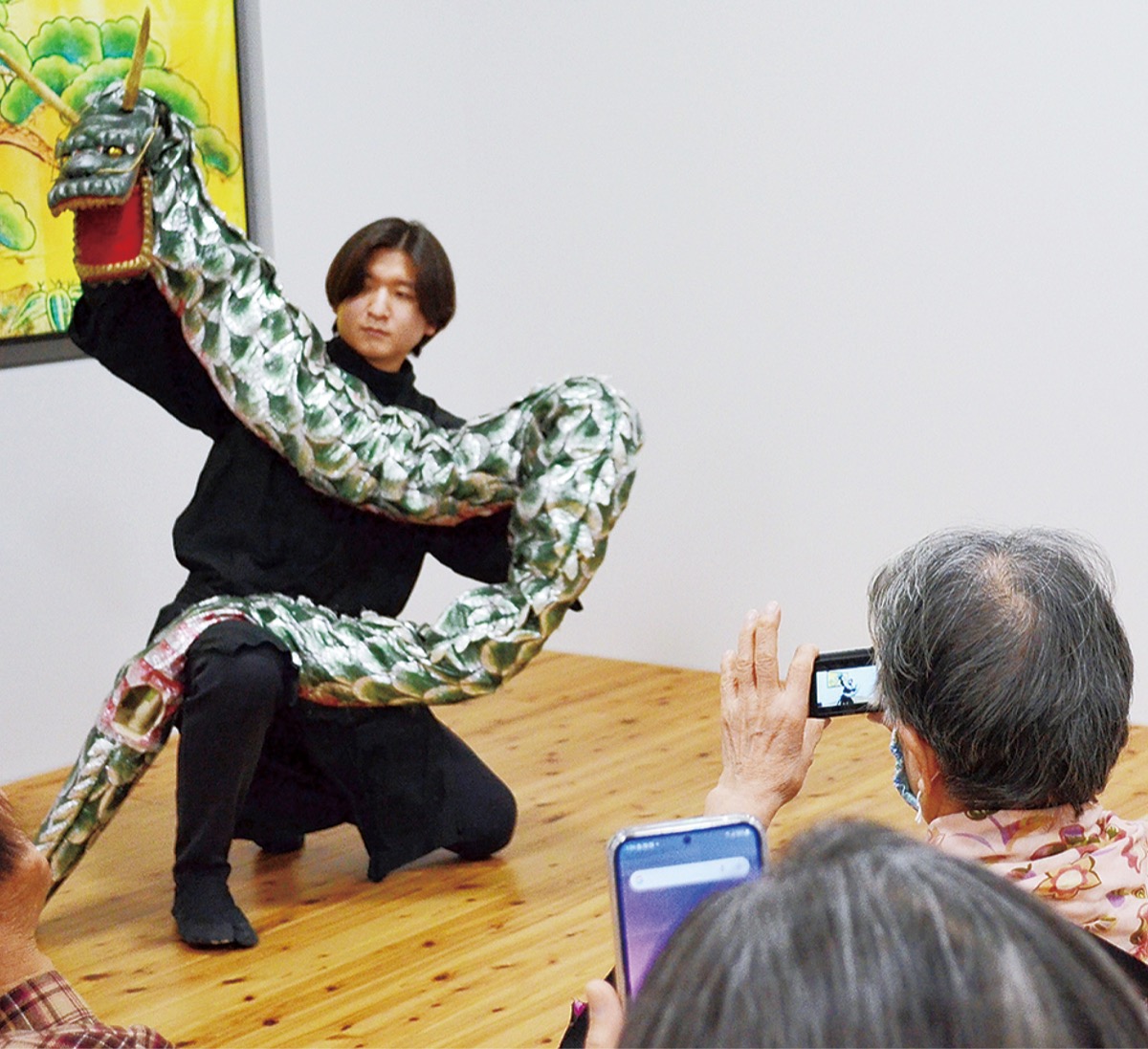 企画展に合わせて、八王子車人形のミニ公演が1月6日に同館で催された。八王子車人形西川古柳座の西川柳玉さんが、おめでたい演目の「三番叟」や辰年にちなんだ「龍の舞」などを披露。演目や人形の解説、操作体験なども行われ、約60人の観客を楽しませた。