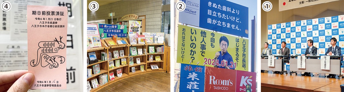八王子青年会議所(藤田愛樹理事長)も「市長選挙公開討論会」を12日に学園都市センター(旭町)で開催。「未来の八王子について討論する場」として公約などついての活発な意見が交わされた。会場に来れない人にも配慮し、ユーチューブでも生配信された=写真【1】。