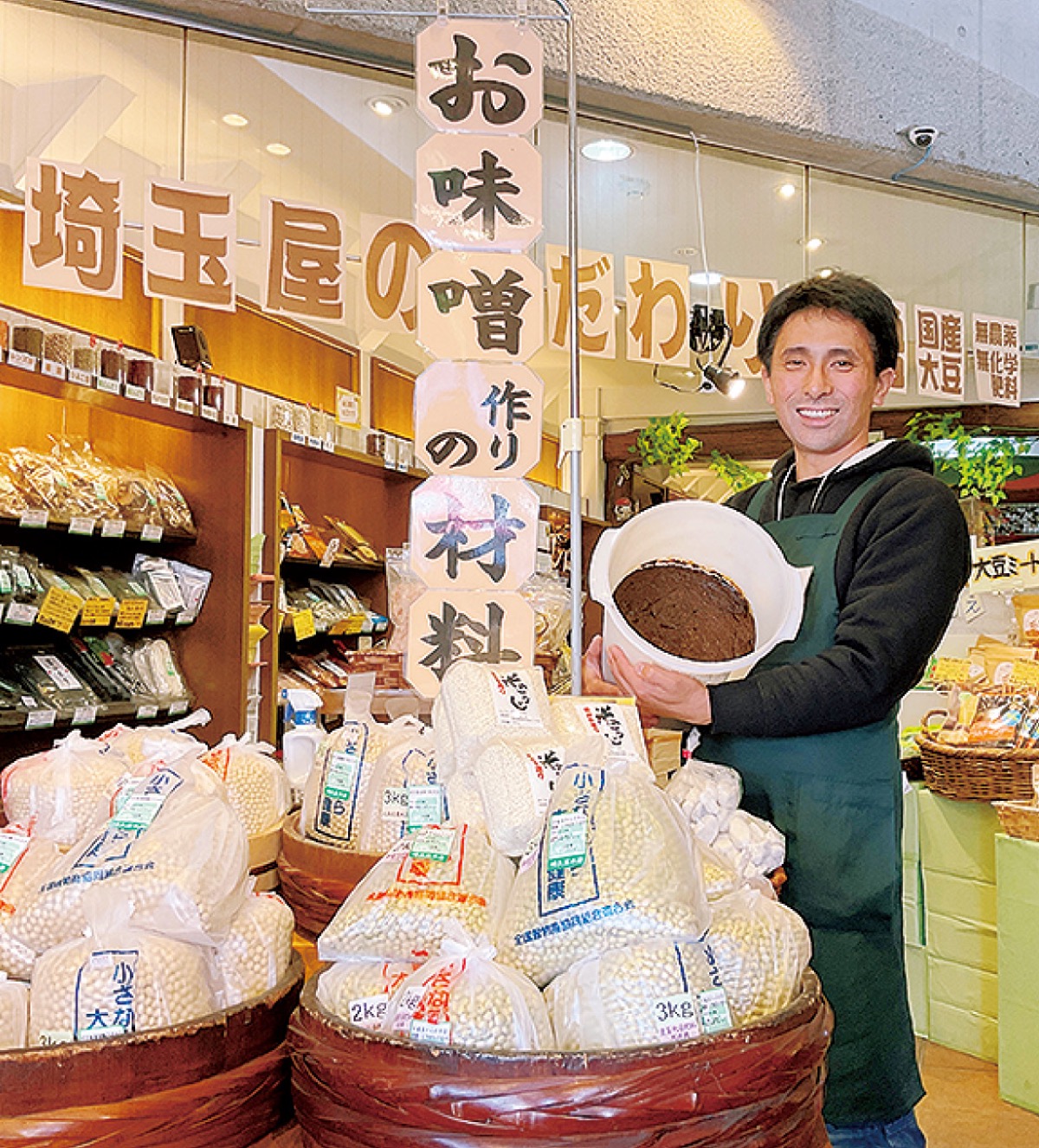 創業150年を超える豆・乾物専門店「埼玉屋本店」(八幡町)では、手作り味噌教室を4月上旬まで開催している。