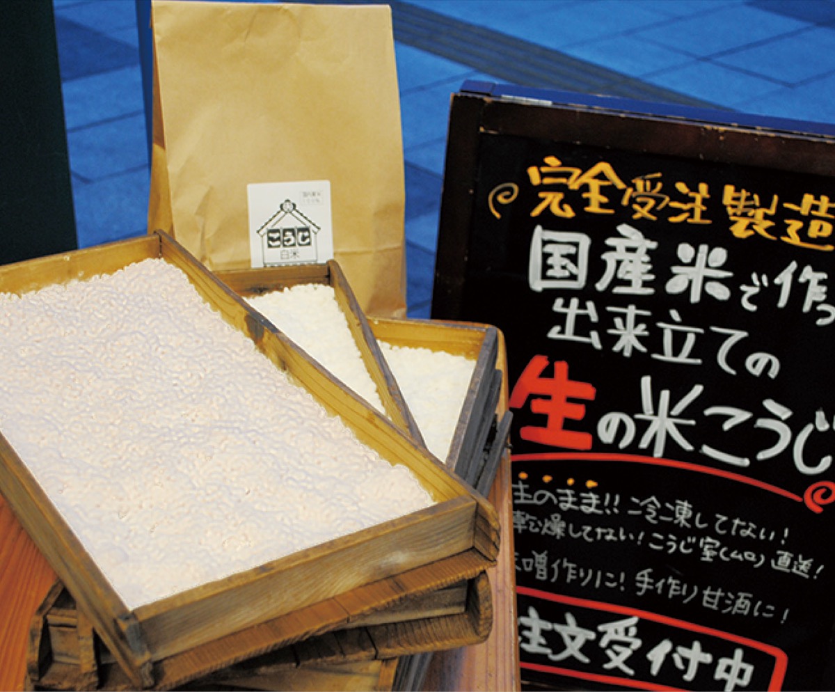 創業150年を超える豆・乾物専門店「埼玉屋本店」では、国産米で作る生糀(こうじ)を取り扱っている。完全受注製造のため冷凍なし。本来の美味しさを味わうため「3日以内の調理」を勧めている。「生糀ならではの芳香な香りがあります。甘酒や味噌作りをお楽しみください」と同店の長谷部孝幸さん。受け取りは店頭(※5袋以上の購入で配達も)。
