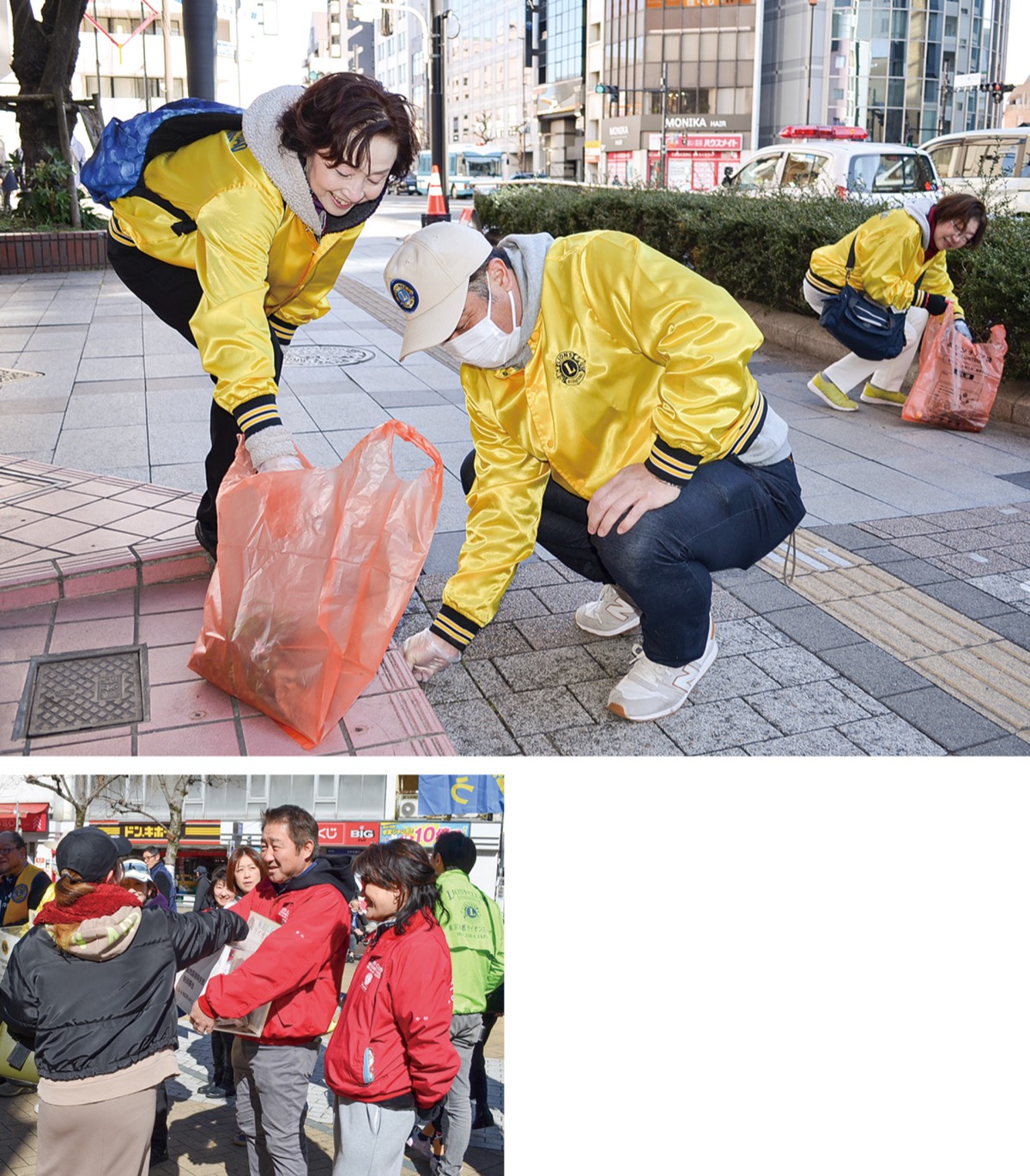早春の市街地を約1800人のランナーが駆け抜けた第74回八王子夢街道駅伝。2月11日の大会後、コースとなった甲州街道周辺で地元奉仕団体のライオンズクラブ(以下LC)会員が、ごみ拾いや能登半島地震の街頭募金活動を行った。