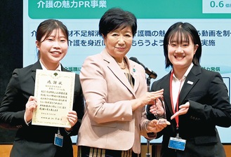 ゼミ生に伴走してきた青野健作准教授は「予算額の大きさに都の期待を感じる。女性の共感力の高さは社会課題に心を寄せ、事業提案に生きると感じる。介護職のイメージ向上、ぜひ実現してほしい」と話す。