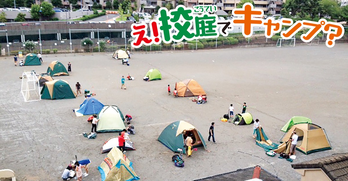 夏休(なつやす)み、親子(おやこ)で学校(がっこう)に泊(と)まってキャンプをします。毎回(まいかい)70人(にん)くらいが参加(さんか)するそうです。「楽(たの)しいイベント」ではありますが、そこには防災(ぼうさい)についての学(まな)びもあります。