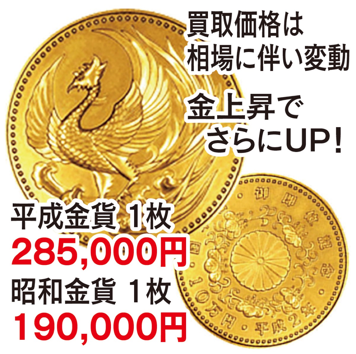 さらに今、売り時なのが「10万円金貨」。かつてない金の高騰で買取価格が上昇している今がチャンス。「まだ間に合います。金相場が急変する前に、ぜひご相談を」