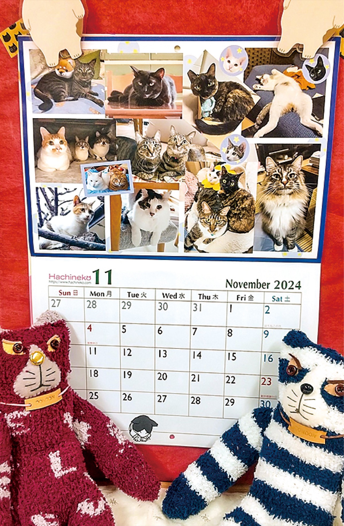 カレンダーの制作にあたり昨年、同団体の保護施設出身で今は飼い猫になっている猫などの写真を募集。「今月moはちねこ!」と題し、約100点の愛らしいスナップ写真をちりばめた。