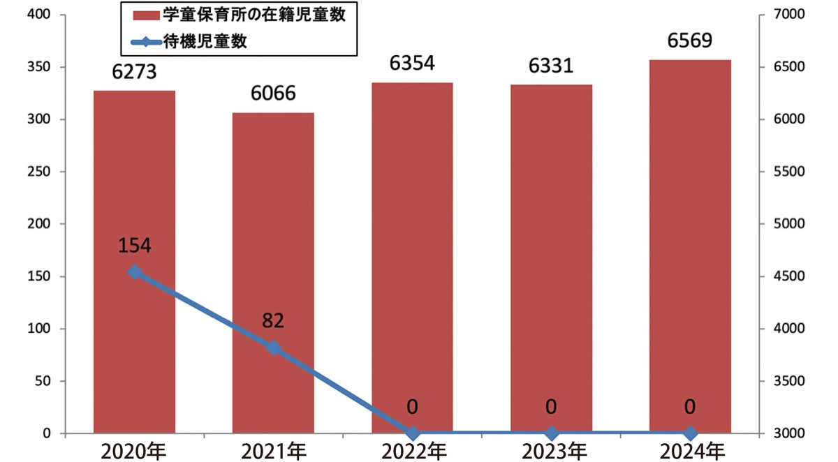 それらが功を奏し、共働き世帯の増加が進む中でも待機児童数は徐々に減少。20年にはピーク時の半分以下となる154人、21年には82人とし、22年から0人を継続している。なお24年4月時点の学童在籍児童数は、過去最高の6569人。