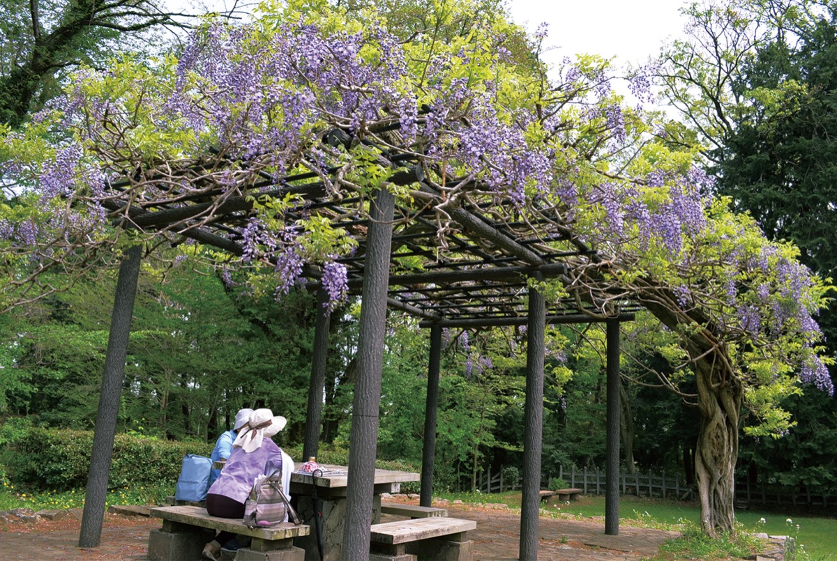 この季節はフジのほかにも、群生地のあるヤマブキソウが明るく黄色い花を付けることから、自然観察で園内を巡る人も少なくない。20日に東久留米市から訪れた86歳の女性は「景色と野草を見ることが好きで、よく遊びに来ている。ちょうどフジの盛りに出会うことができてうれしい」と笑顔を浮かべた。
