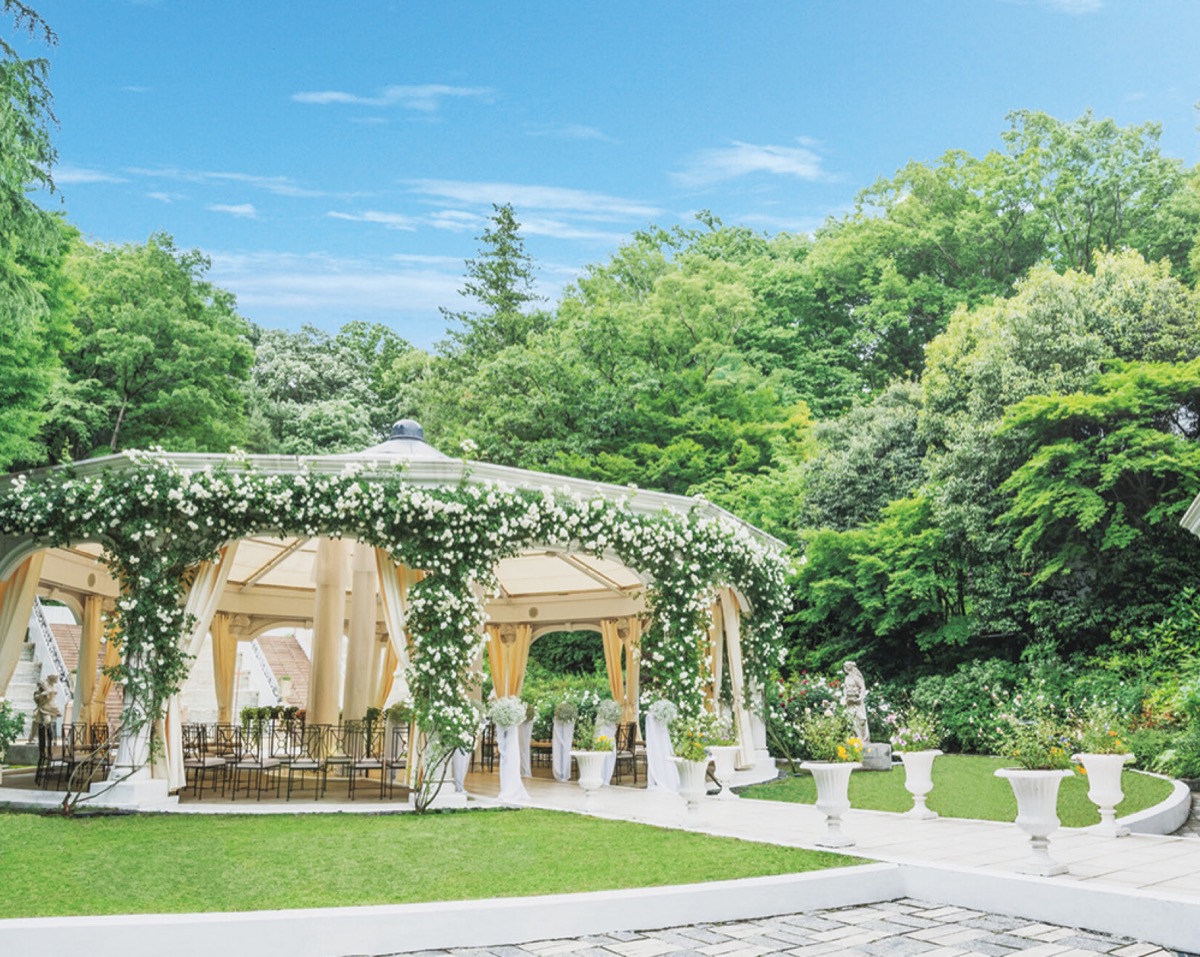 約40種500株のバラが咲き誇るガーデンチャペルで、優雅にランチやアフタヌーンティーはいかが。鑓水の結婚式場「八王子日本閣」で、9月末(バラの見頃は5月中旬〜6月上旬頃)までの期間限定で受付中。