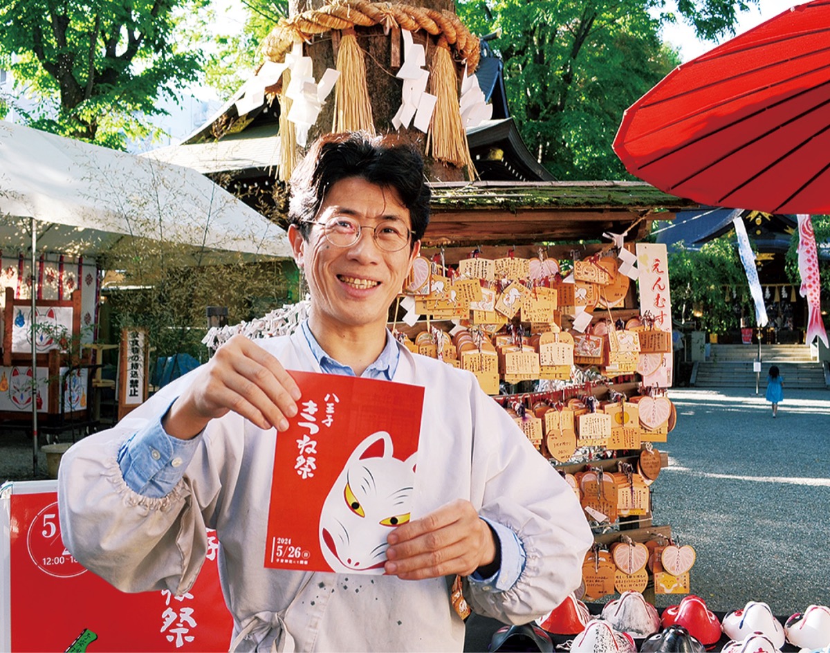 社殿の裏手に稲荷神社がある同社。祭りは稲荷神社の創建を祝う初午祭に関連した行事として、2015年から始まった。稲荷神社の使いである「きつね」に扮して街中を練り歩く仮装行列(先着100人。午後2時から整理券配布)をはじめ、きつね顔の化粧やきつね面のぬり絵体験、飲食物の模擬店、的当てなどのゲームコーナーが楽しめる。禰宜の松宮秀満さんは「子どもはもちろん、ぜひご家族で参加していただければ」と話す。正午から午後6時まで。問い合わせは同神社【電話】042・642・2551。