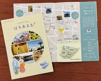 八王子おさんぽマップ「はちあるき」は、A5版カラーの20ページの冊子。歩道が整備された街中を歩きながら伝統文化を感じられる「八王子北口周遊コース」、八王子駅南口から西八王子駅までの街並みと食べ歩きが楽しめる「西八王子満喫コース」、四季折々の風景や映えスポットなどに出会える「南大沢自然散策コース」が、写真やイラストとともに紹介されている。市は440万円の費用をかけて5万部を作成。保健所や市民部の各事務所、市民センターなどで配布する。