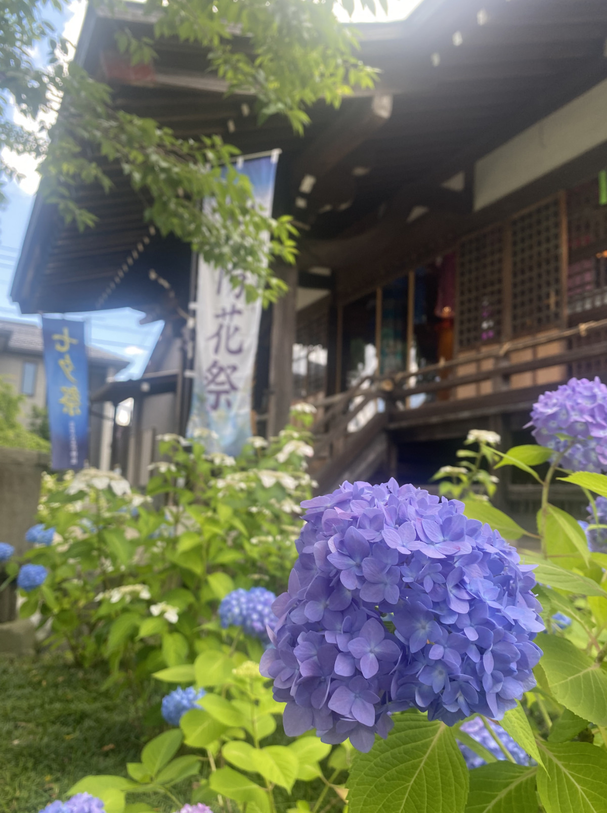 同神社には、ヤマアジサイや舞孔雀、白やピンク色のアナベルなど、約300株が植えられている。「今はちょうど舞孔雀が可愛く咲いている。ぜひ見に来て」と同神社の担当者。この時期はアジサイ目当ての参拝客も多く、近隣のデイサービスに通う高齢者らもたびたび訪れ、散歩がてらに梅雨の風物詩に思いを馳せているという。