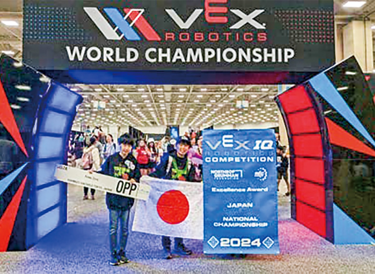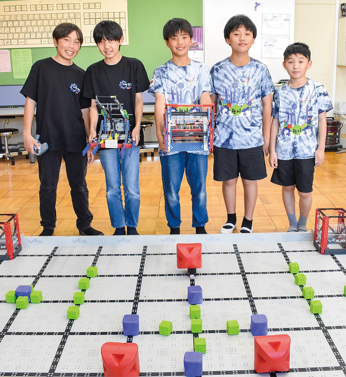 八王子から世界最大級のロボット競技「VEXロボティクス世界大会」に日本代表として出場したチームがいる。宮上中2年の今泉隆志さんと中田響一さんの2人組と、青井創さん(中1)、清田隆士郎さん(中1)、尾花凛隼さん(宮上小6)の3人組だ。