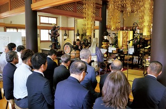 当日は同社の奉讃会会員や萩生田光一衆議院議員、初宿和夫市長など約30人が参拝。大善寺の田邊裕誠住職による読経に合わせて献香を行い、年に一度ご開帳される「白瀧観音尊像」に手を合わせた。奉賛会副会長を務める同組合の樫崎亮一理事長は「八王子に白瀧観音が祭られて200年。その教えを広め、大切な地域文化継承の一翼を担っていきたい。これからも織物を始めとする八王子の産業を見守っていただければ」と式辞を述べた。