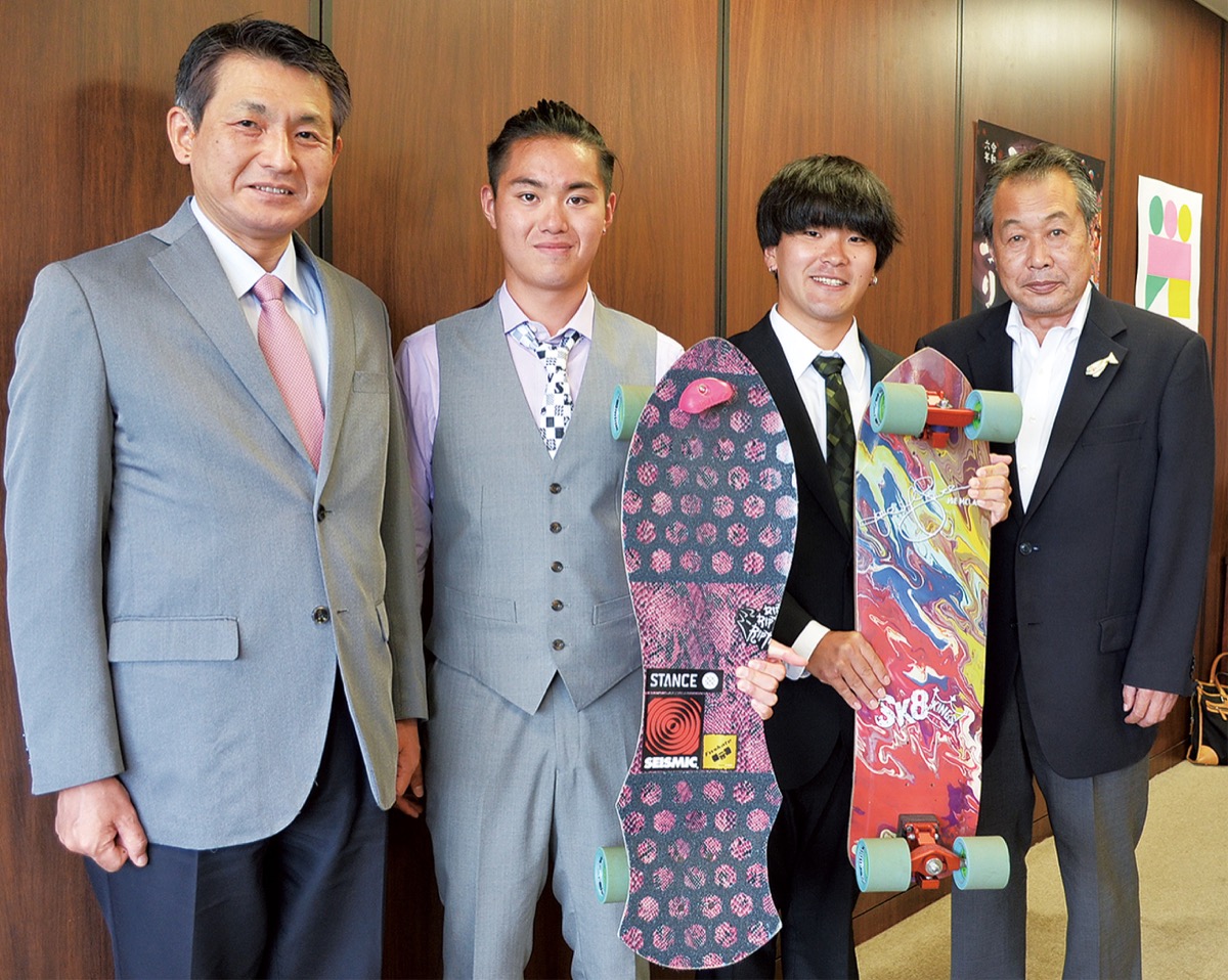 緑が丘小学校、椚田中学校卒業生の2人。2歳から始めたスノーボードで選手として活躍し、スケボーのスラローム競技でも日本の年間シリーズチャンピオン6連覇を達成している西谷さんと、西谷さんの誘いで中学生からスケボーを始めて、国内大会で上位入賞を果たしている塚本さん。2人は5月に山梨県で開催されたスラローム日本代表選考会を兼ねた大会「North Mt.Fuji "A"Games」に出場し、西谷さんが「ハイブリッド」で優勝、塚本さんが「ハイブリッド」3位・「ストレート」で優勝して、代表の座をつかんだ。