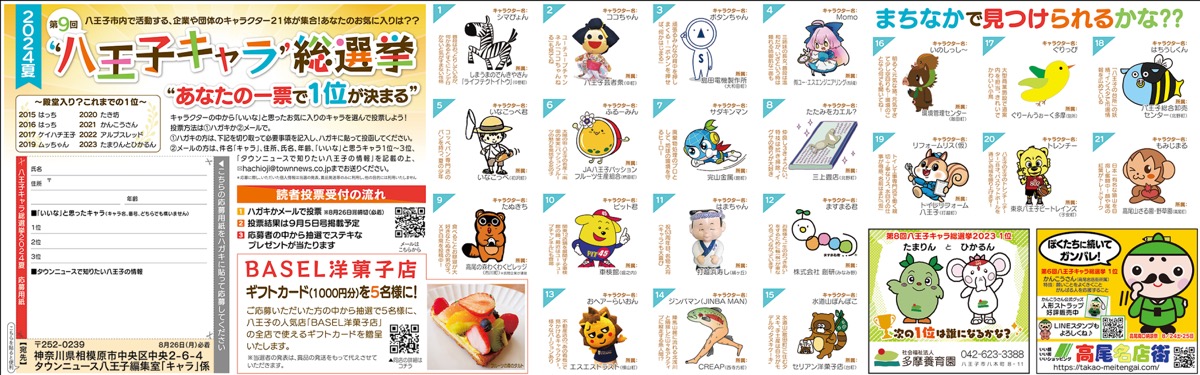 タウンニュース八王子編集室では夏の恒例企画として、「第9回八王子キャラ総選挙」を行う。
