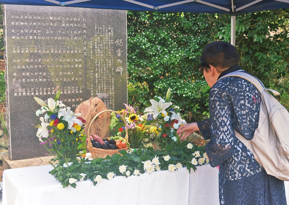 太平洋戦争末期の1945年8月5日、新宿から長野へ向けて走行中の列車が八王子市裏高尾町の「湯(い)の花トンネル」付近で米軍戦闘機の銃撃を受け、乗客133人が負傷、52人以上が亡くなった。この事件から79年を迎えた今年8月5日、現場近くの慰霊碑で恒例の慰霊の集いが催され、遺族や地域住民らが犠牲者の冥福を祈った。