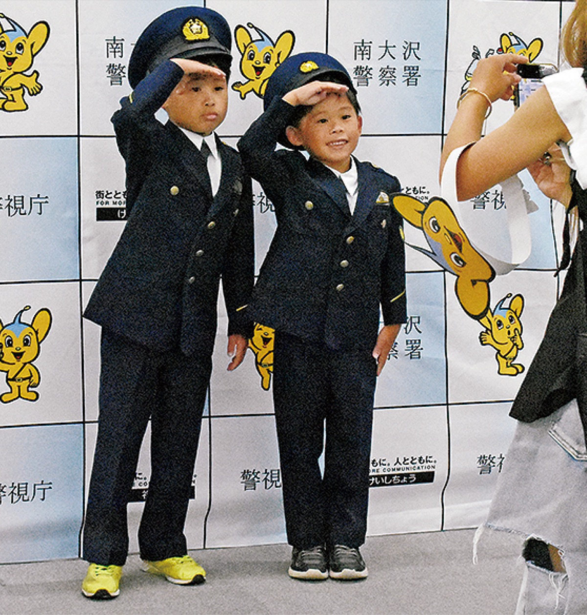 南大沢警察署(今村輝明署長)が7月31日と8月8日の2日間、「MPD2024夏フェス」と題し、子どもたちを対象に初めての催しを開催。警察や警察官を身近に感じてもらうことを目的に、警察署管内の4歳から15歳の子どもら約120人が参加した。子ども用の制服を纏い、ピーポくんと記念撮影するなど貴重な機会を楽しんだ。