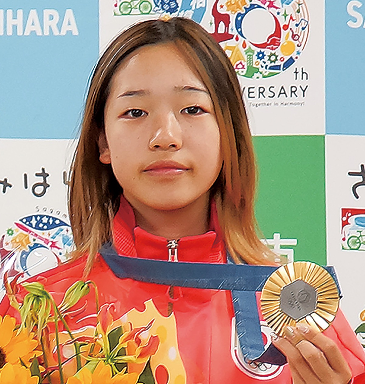 パリオリンピックのスケートボード女子ストリートで金メダルを獲得した吉沢恋(ここ)選手が8月3日、地元である神奈川県相模原市の本村賢太郎市長と面会し、晴れ舞台での活躍を報告した。