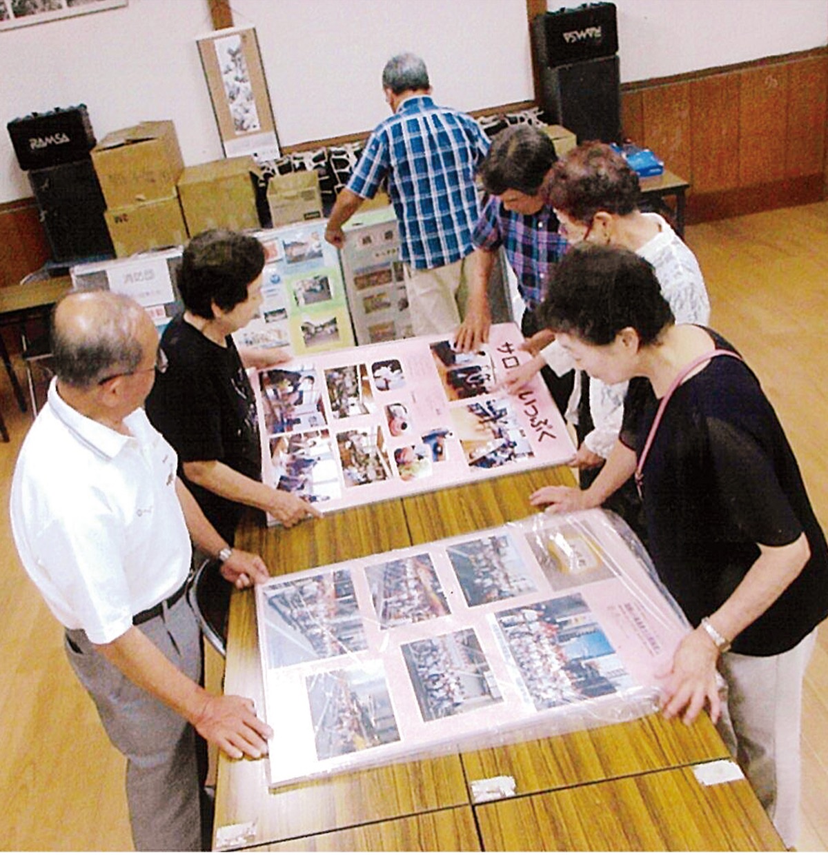上川町の田守神社で8月24日(土)と25日(日)に開催される上川町中部町会の町民祭(夏祭り)に向けて、地元サークルらが準備を進めている。製作しているのは、会場に飾る「活動紹介パネル」だ。