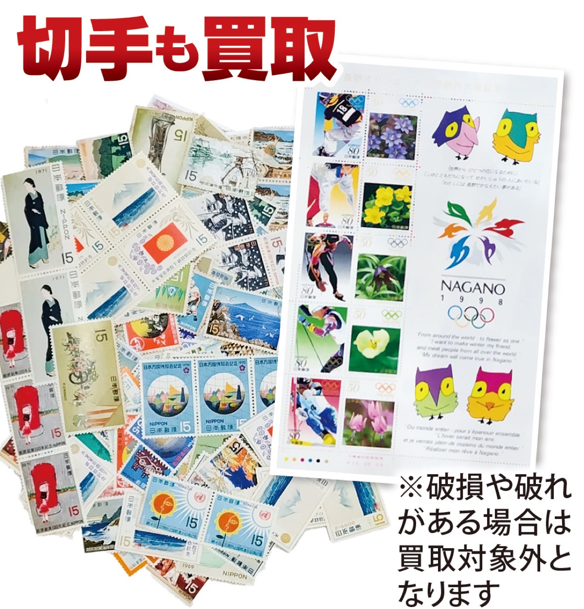 もう使わない切手も同店へ。古くてもバラバラでもOK。一点ずつ丁寧に査定して、シートなら額面の70%〜、バラでも60%〜で買取ってくれる。※枚数により査定に数時間〜数日かかる事も