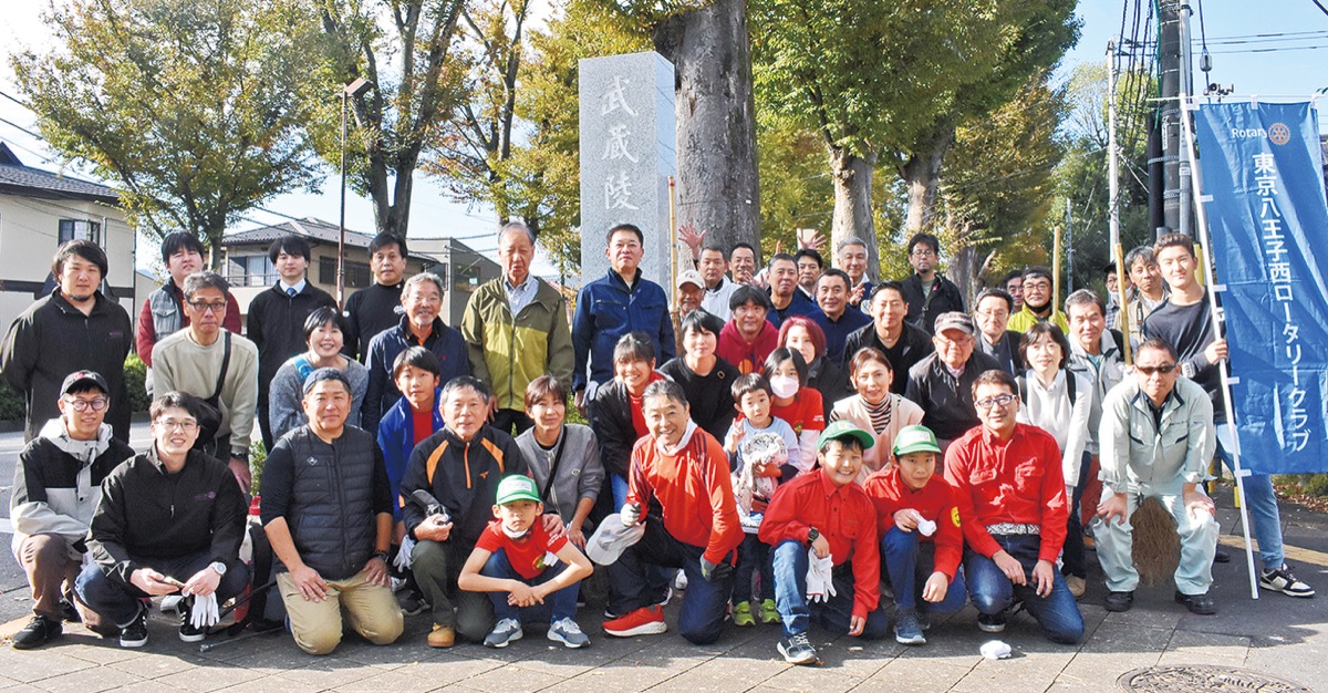 東京八王子西ロータリークラブ(山口覚会長)が11月9日、武蔵陵墓地の参道周辺で清掃活動を行った。