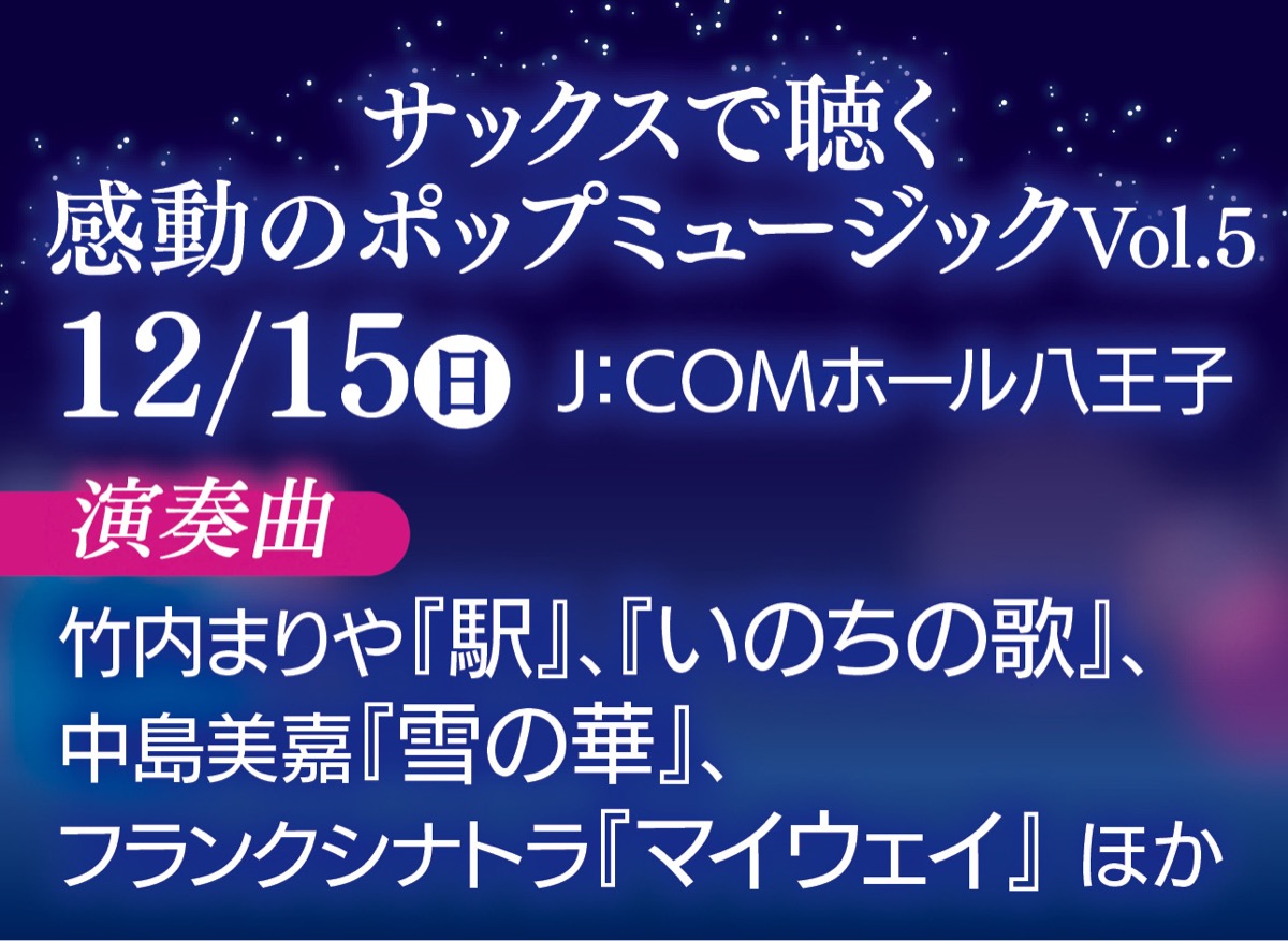 心にしみ渡るようなサックスの音色に自然と涙が--。八王子在住のプロサックス奏者・尾崎一宏さん=写真=が12月15日(日)、コンサート「サックスで聴く感動のポップミュージック」をJ:COMホール八王子で開催する。