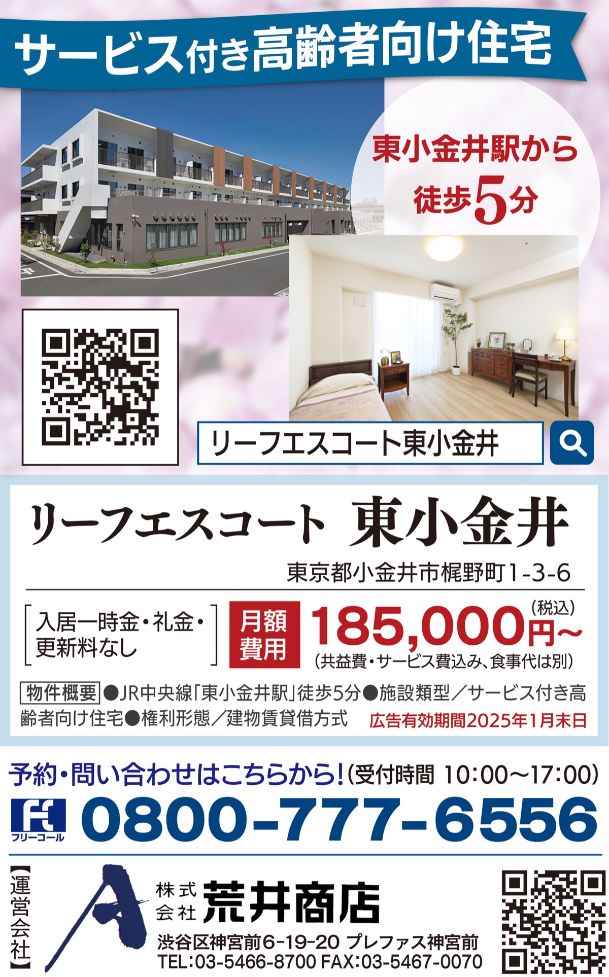 「リーフエスコート東小金井」は今年4月に開設。閑静な住宅地にありながら、東小金井駅徒歩5分と交通や生活利便性に優れたサービス付き高齢者向け住宅だ。