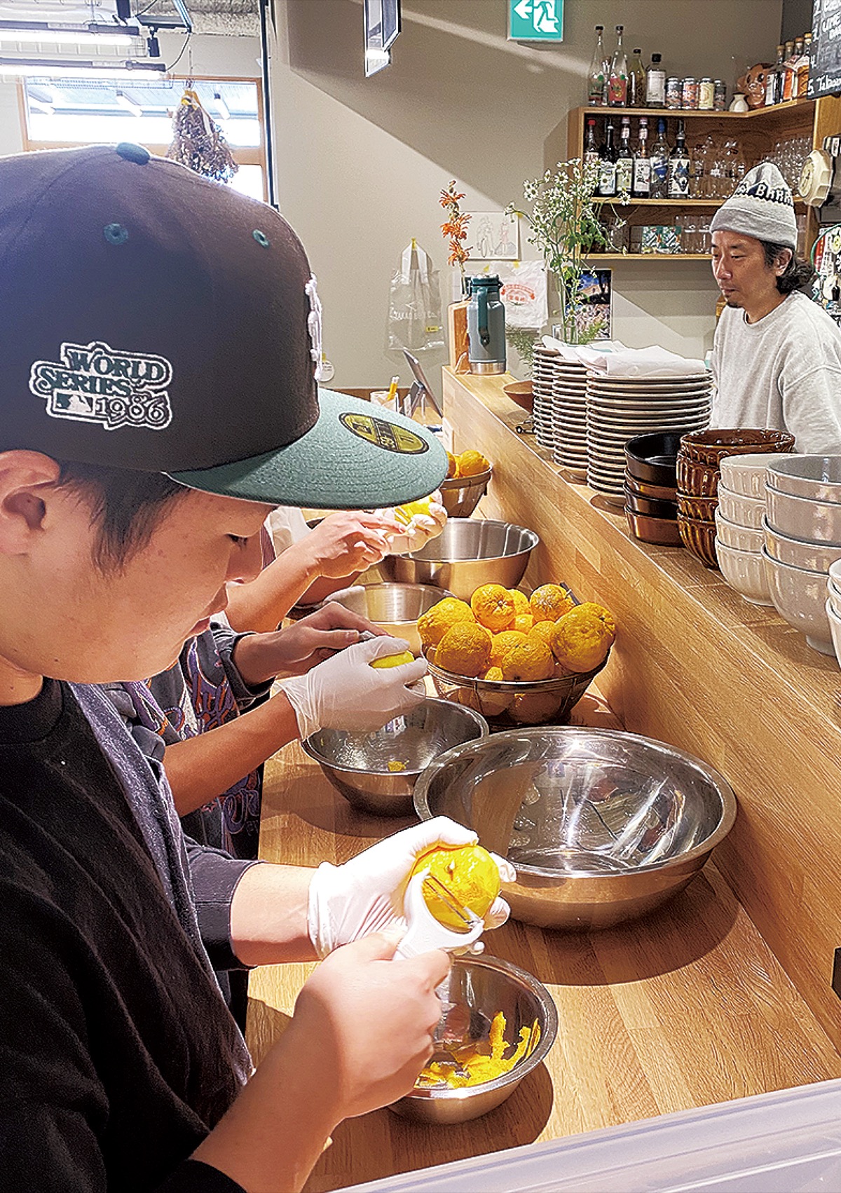 聖パウロ学園高等学校(下恩方町)の生徒らが12月19日、出荷予定がなくフードロスになる可能性のあった「ロスゆず」を活用したビールをつくるため、ゆずの皮剥きを行った。