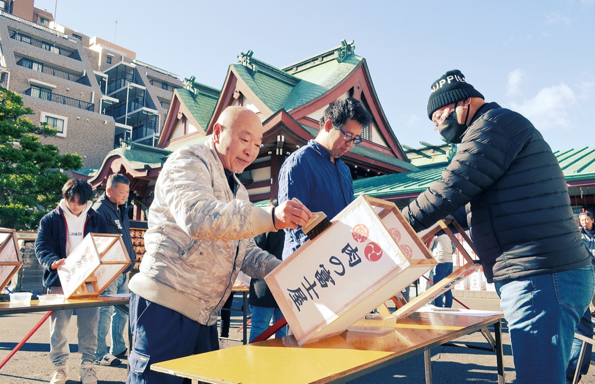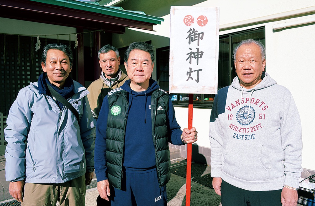 この日は会員ら約30人が参加。冬晴れの下で、36灯ある御神灯から前年の奉納者名が書かれた和紙をはがして、新しいものに張り替える作業に汗を流した。青年会の栗原一会長は「再びコロナやインフルエンザが流行し、闇バイトなどの物騒な事件も起きている中で、少しでも平和な世の中になればと会員一同で思いを込めて作業した。初詣に訪れる皆様が清らかな気持ちで新しい年を迎えてもらえれば」と語った。