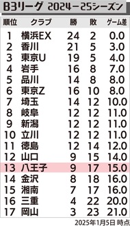 年明けは1月11日(土)、12日(日)にアウェーで岐阜スゥープスと対戦した後、ホーム2連戦。狭間駅徒歩2分のエスフォルタアリーナ八王子で1月18日(土)と19日(日)の2日間、12位の山口パッツファイブと対戦する。18日は午後4時、19日は午後1時試合開始。また、24日(金)と25日(土)は14位の金沢武士団と対戦。負けられない戦いが続く。24日は午後7時、25日は午後2時試合開始。
