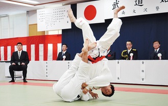 この日は有段者による柔道と剣道の高点試合、暴漢を制圧する総合対処法訓練や合気道の演武、少年柔道の紅白試合などが披露された。選りすぐりの署員が競い合った高点試合では、一歩も引かない選手たちの気迫のこもった技の応酬に、試合が終わるたびに会場から盛大な拍手が沸き起こった。