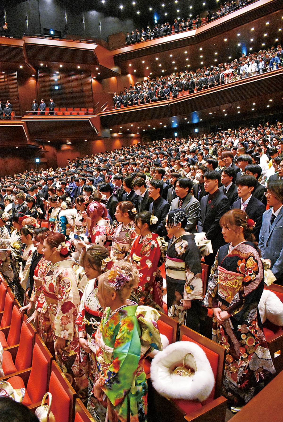 2004年4月2日から05年4月1日生まれの7258人を対象に「八王子市二十歳を祝う会」が1月13日、J:COMホール八王子を会場に行われた=写真。