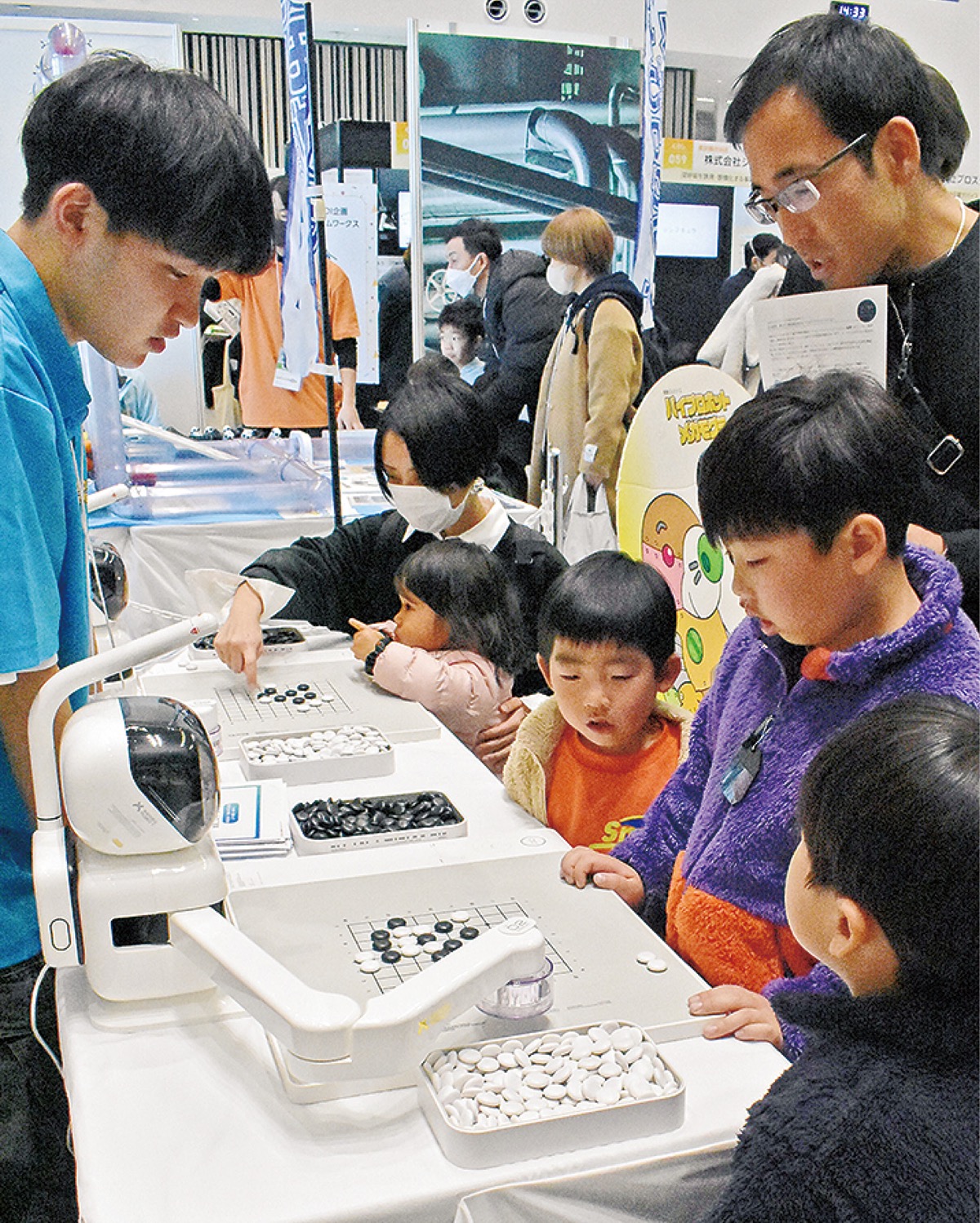 「くらしを支えるロボット大集合」と題した展示エリアにはAI囲碁ロボット「Sense Robot」が登場。対戦した武蔵野市から親子で訪れた金森元汰さん(8)は「ロボットと対戦したのは初めて。1勝できて楽しかった」と話した。父親の渉さん(36)は「仕事柄、最新技術を間近に見て知っておきたいと思って参加した」と話していた。