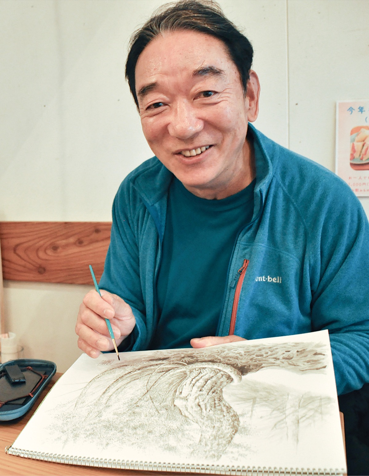 「成功率は五分五分と言われていて、体力的にも厳しいものがあったが、挑戦してよかった。実は登山から派生した趣味に墨絵がある。訪れた先で感じたことを揮毫する野筆セットをアウトドアメーカーから渡されたが使い方を勘違いし、スケッチブックを山に持ち込んで絵を描いていた。恥ずかしい思いをしたが、それが今では個展を開くまでに。うん、これはこれで楽しい」