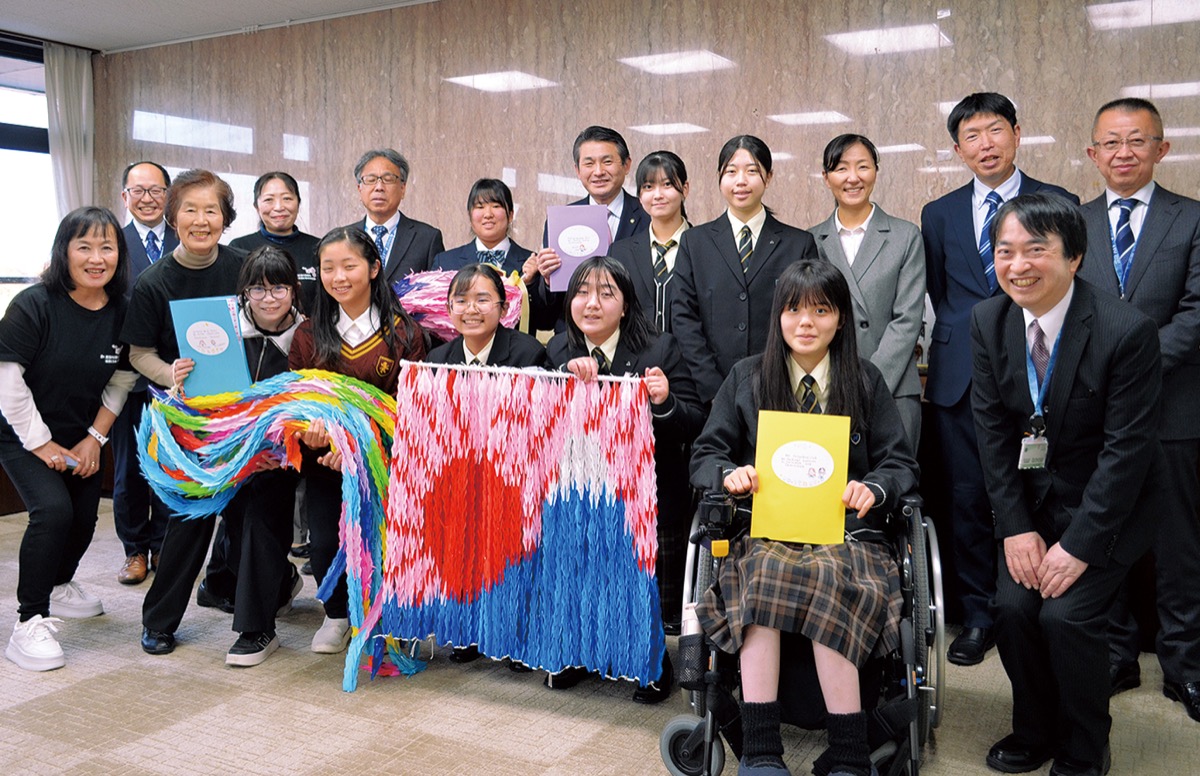 第二次世界大戦後のドイツで伝染病患者の治療に尽力し、多くの命を救った八王子市出身の医師・肥沼信次博士。命日(3月8日)には同国ヴリーツェン市で毎年、慰霊祭が催されている。市民団体「Dr.肥沼の偉業を後世に伝える会」(塚本回子代表)では慰霊祭の日に博士の墓前に供えてもらおうと、10年前から市民が折った千羽鶴を市役所を通じて現地へ送り続けている。今年も2月7日に学生らと市役所を訪れ、初宿和夫市長に約4000羽の千羽鶴を手渡した。