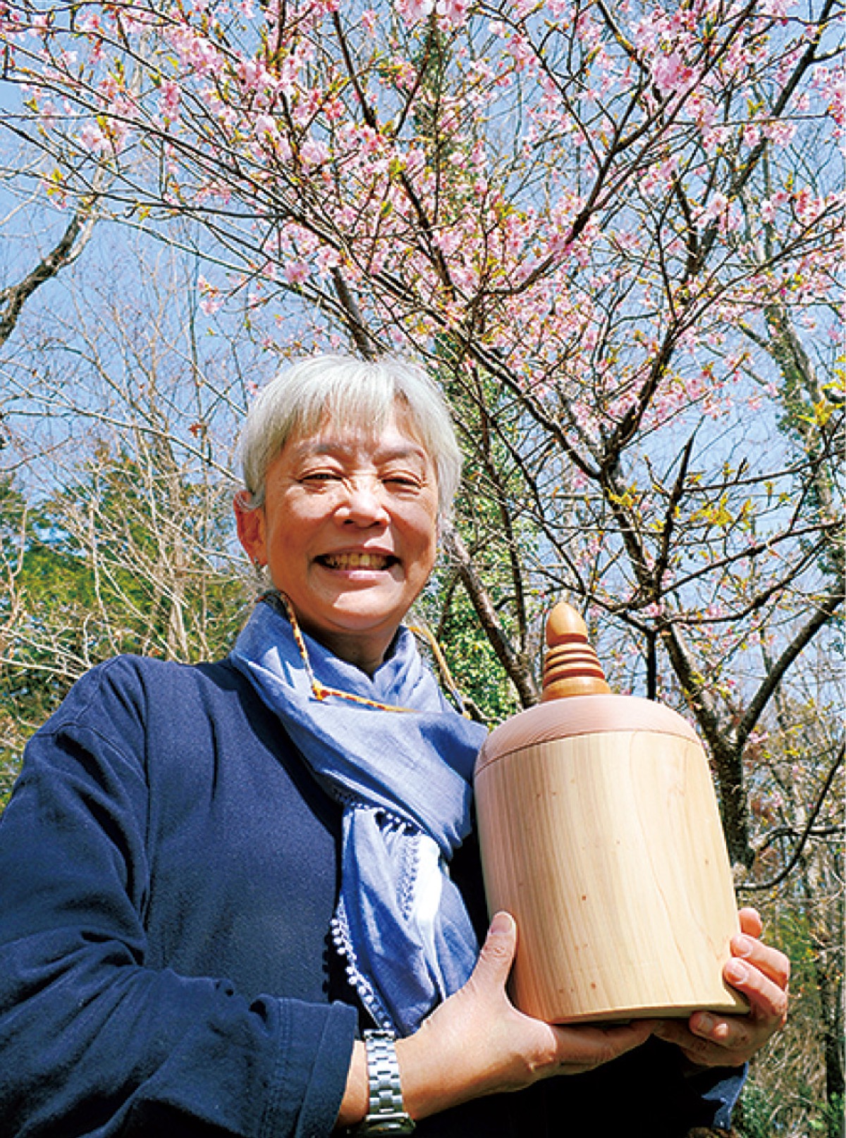 延寿院裏手の里山にある同苑ではこの季節、7種類の桜が咲き誇り、訪れる人の目を楽しませている。同苑では墓標の代わりに木々を植え、その根元に多摩産材を使った骨壺で埋葬。案内人の中山るりこさんは「里山の景観を損なわず、墓石も置かない。そのまま土に還り里山の命を育む循環型のお墓です」と説明する。