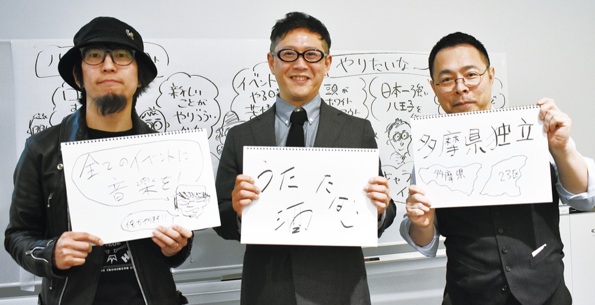 JR八王子駅周辺エリアの「こうなったらいいな」をみんなでアイデア出ししてみよう、という趣旨の集まりで学生や社会人など約90人が参加。