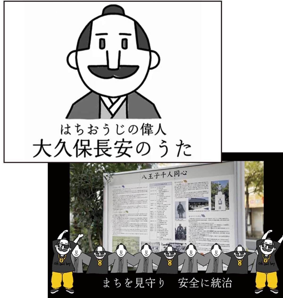 動画は30秒間。親しみやすい絵柄で描かれた長安と一緒に、さまざまな功績をラップで紹介する。「まちの礎 築いた ひげがお茶目な お兄ちゃん」「堤防築いた 石見土手 まちを見守り 安全に統治」など、覚えやすい歌詞を並べた。